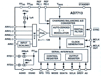 Не вдаваясь в отличия от AD7714 во внутренней структуре (для знакомства с ними рекомендуем читателям каталоги Analog Devices), кратко ознакомимся с основными аппаратными особенностями остальных микросхем рассматриваемого семейства.