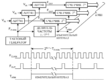 Рис. 5. Многоканальное аналого-цифровое преобразование с использованием синхронизируемых ПНЧ