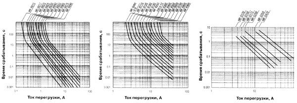Зависимость времени срабатывания от тока перегрузки показана на графиках (рис. 7).
