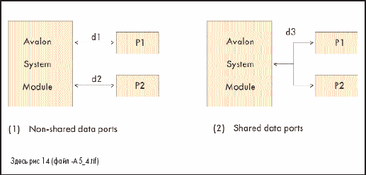 На рис. 13 есть два вида портов, которые могут быть в интерфейсе верхнего модуля Avalon System:
