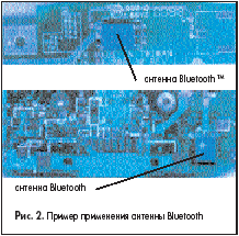 В системе оборудования Bluetooth антенна соединяется с чипом RF с помощью линии передачи данных. Потери сигнала в этой линии связи можно свести практически к нулю, поместив антенну непосредственно в модуле Bluetooth RF.