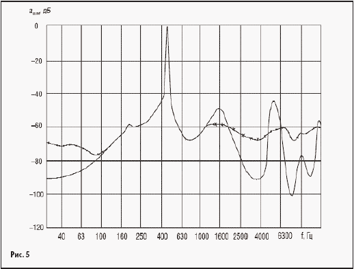 Для измерения спектра выходного сигнала использовался 28-полосный спектроанализатор MICRO Audio mkA-2800 R с динамическим диапазоном 70 дБ.