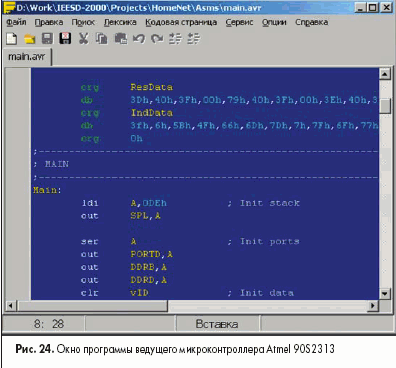 Окно программы ведущего микроконтроллера Atmel 90S2313