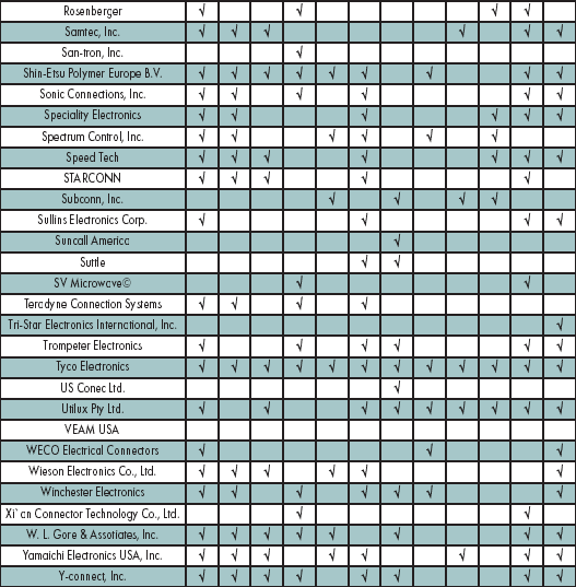 В мире насчитывается большое количество компаний и фирм, производящих соединители (табл.4). На российском рынке представлено малое их число. И это вполне естественно.Большинство компаний предлагают одинаковую продукцию, соответствующую определенным стандартам: DIN, ISO или являющуюся типовой, такой, как, например, разъемы интерфейсов компьютерной техники. Отличия между соединителями от разных производителей определяются типами используемых материалов контактов, корпуса, изолятора, типами гальванических покрытий контактов, конструктивными особенностями, призванными обеспечить наилучшее качество соединения, долговечностью и безопасностью (касается силовых разъемов).