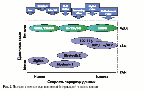 Позиционирование ряда технологий беспроводной передачи данных