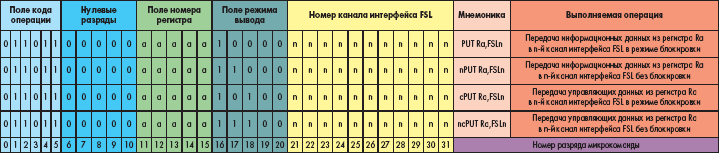 Для передачи данных различного типа из регистра общего назначения в выходной канал интерфейса FSL предусмотрены четыре варианта инструкций, форматы которых приведены в таблице 21.