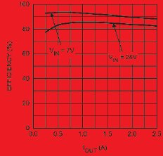 Рис. 4. КПД LM25005 в зависимости от напряжения и тока нагрузки