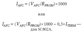 Функцию аналогового регулирования тока заряда поддерживают контроллеры SC802, SC802A, SC804 и SC804A. Для управления величиной тока заряда служит вход AFC. Величина напряжения, подаваемого на него от ЦАП или микроконтроллера с аналоговым выходом, пропорциональна выходному току: