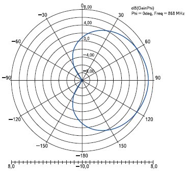 Рис. 13. Диаграмма направленности антенны метки в вертикальной плоскости
